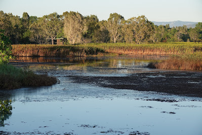 Our 72-hour limit for camping at Forrest Beach RV Park was up. We packed everything away in the caravan and headed down to the beach for a final salt water immersion. Back at the park we showered and were on our way to our next destination. After a drive of 20 kilometres, we set camp at Tyto Wetlands RV Park. Late afternoon we decided to sit under the shade of a tree overlooking part of the wetlands. We invited some of our neighbours whom all participated in a happy hour gathering. There was a fair bit of jovial verbal sparring happening. The majority of the small camping area = 3 x Bushtracker Caravans and 3 x Jayco Caravans with an ongoing discussion about the relevant caravan positives. There was a lot of laughter.
